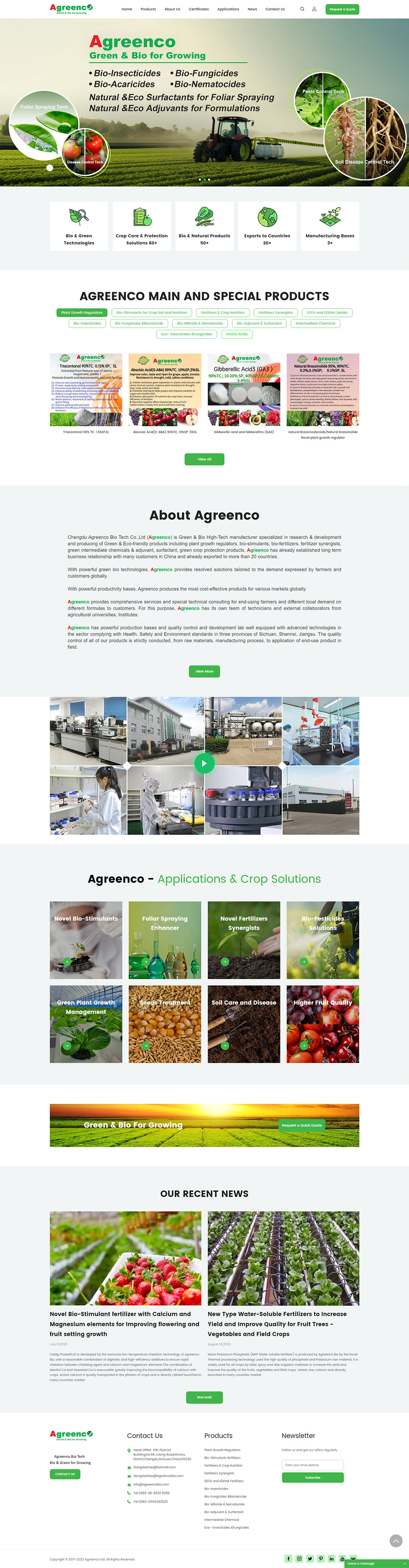 Chengdu Agreenco Bio Tech Co ,Ltd (Agreenco) is Green & Bio High-Tech manufacturer specialized in research & development and producing of Green & Eco-friendly products including plant growth regulators such as Triacontanol, Natural brassinolide,S-Abscisic Acid(S-aba),