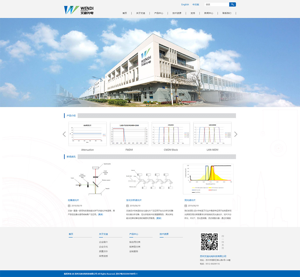 蘇州文迪光電科技有限公司于 2008 年 12月在蘇州新區(qū)注冊(cè)成立。公司主要產(chǎn)品為光通訊用濾光片、紅外鍍膜產(chǎn)品、生化分析濾光片、激光鍍膜、高端鏡頭,并提供相關(guān)的技術(shù)開發(fā)、技術(shù)轉(zhuǎn)讓等服務(wù)。