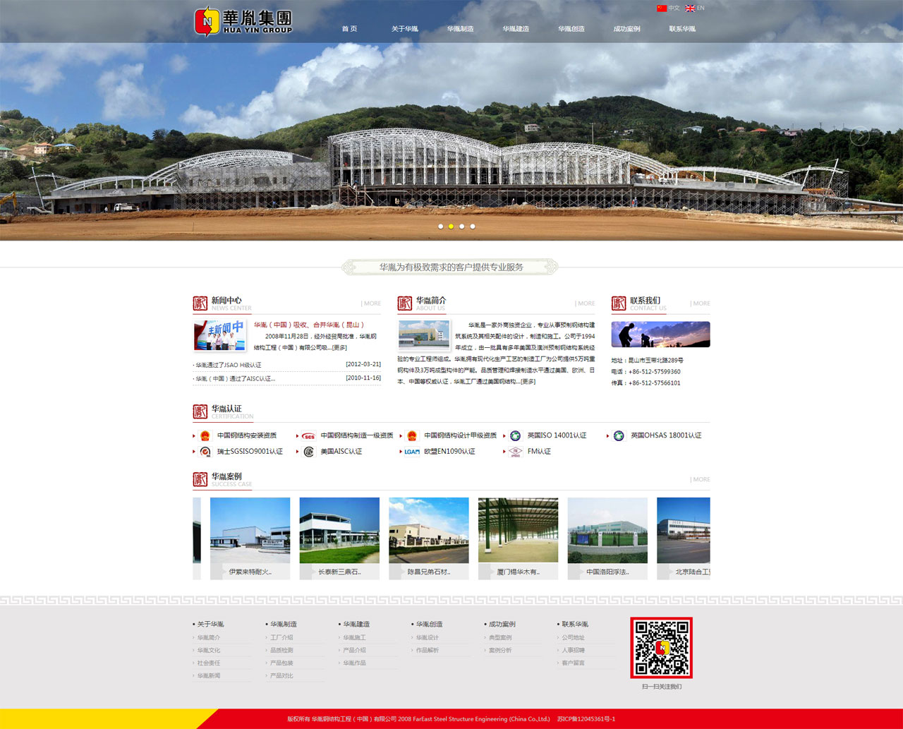 華胤是一家外商獨(dú)資企業(yè),專業(yè)從事預(yù)制鋼結(jié)構(gòu)建筑系統(tǒng)及其相關(guān)配件的設(shè)計(jì),制造和施工。公司于1994年成立,由一批具有多年美國(guó)及澳洲預(yù)制鋼結(jié)構(gòu)系統(tǒng)經(jīng)驗(yàn)的專業(yè)工程師組成。華胤擁有現(xiàn)代化生產(chǎn)工藝的制造工廠為公司提供5萬(wàn)噸重鋼構(gòu)件及3萬(wàn)噸成型構(gòu)件的產(chǎn)能。品質(zhì)管理和焊接制造水平通過(guò)美國(guó)、歐洲、日本、中國(guó)等權(quán)威認(rèn)證,華胤工廠通過(guò)美國(guó)鋼結(jié)構(gòu)協(xié)會(huì)質(zhì)量認(rèn)證(AISC),德國(guó)LGA焊接體系認(rèn)證,通過(guò)荷蘭DNV、瑞士SGS ISO9001質(zhì)量體系認(rèn)證,部分產(chǎn)品獲得FM全球公司(FM Approvals)認(rèn)證,設(shè)計(jì)與施工分別獲得了中國(guó)工程設(shè)計(jì)甲級(jí)證書與中國(guó)鋼結(jié)構(gòu)制造企業(yè)二級(jí)資質(zhì)證書。所有制造流程及質(zhì)量控制遵照標(biāo)準(zhǔn)作業(yè)程序。
